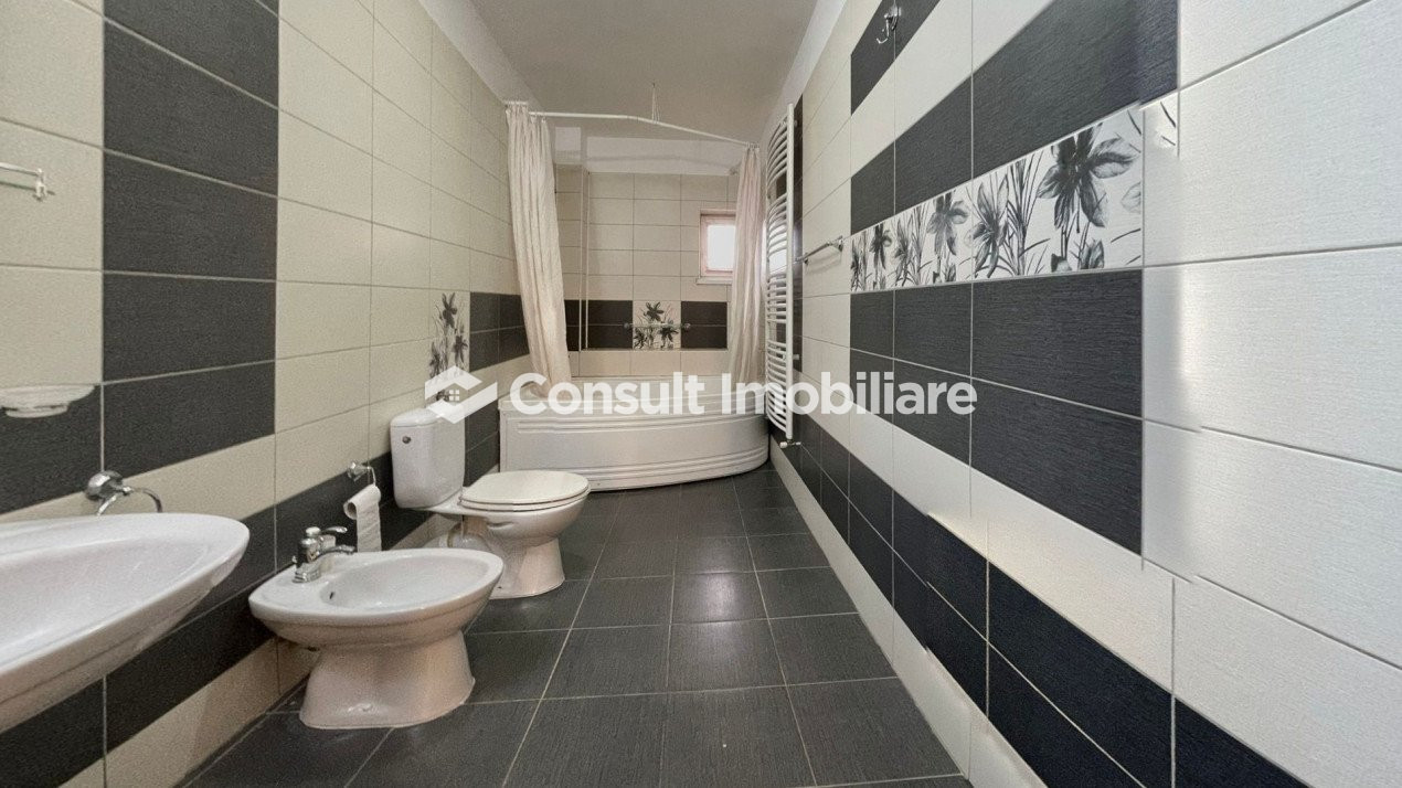 Dispune de o suprafata utila de 121 mp si este compartimentat in: 3 camere decomandate, 1 bucatarie, 1 hol, 2 bai.