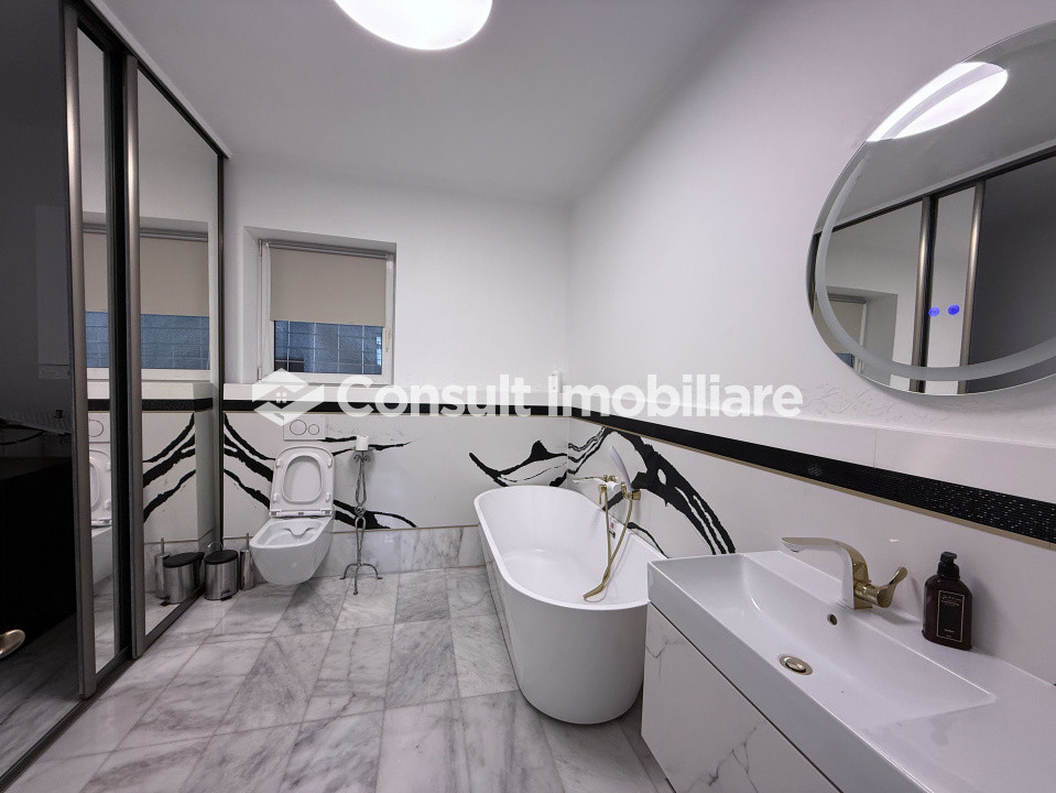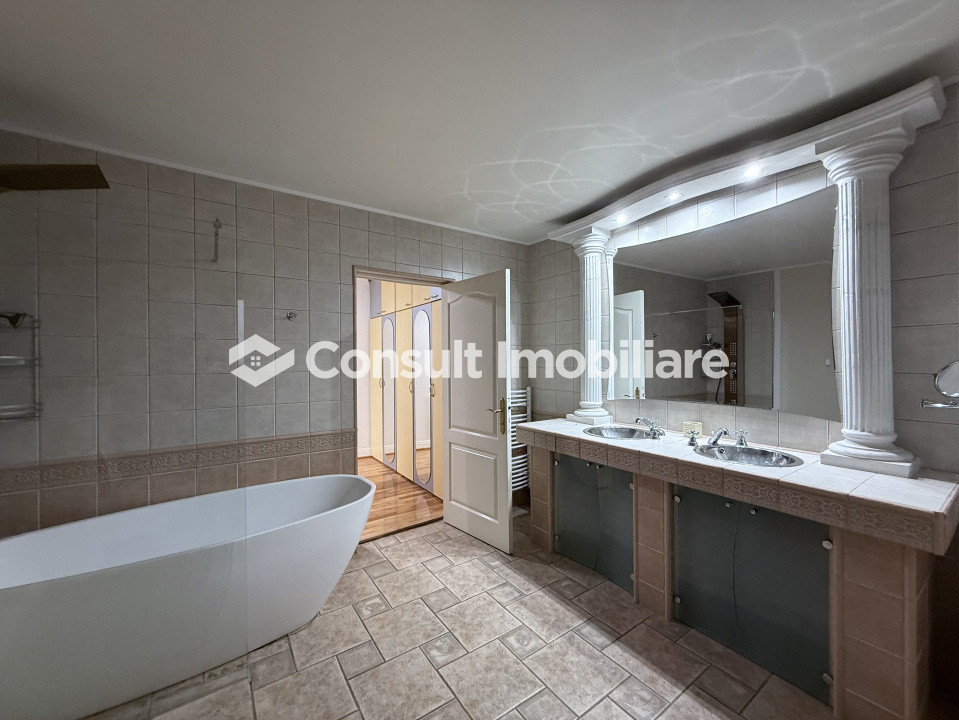 -etaj: 3 dormitoare, din care unul matrimonial cu dressing si baie proprie si încă o baie ce deservește celelalte 2 dormitoare